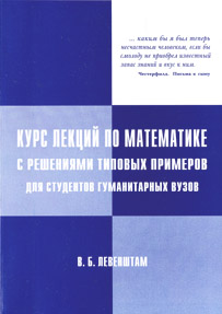 Левенштам В.Б. КУРС ЛЕКЦИЙ ПО МАТЕМАТИКЕ С РЕШЕНИЯМИ ТИПОВЫХ ПРИМЕРОВ ДЛЯ СТУДЕНТОВ ГУМАНИТАРНЫХ ВУЗОВ Москва: Вузовская книга, 2011. – 196 с. ISBN 978-5-9502-0499-9 Формат 60x84/16 |  |